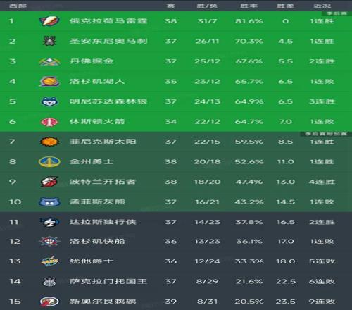 北京时间1月8日,今日的NBA常规赛结束了所有比赛,我们看看西部的战况和最新积分榜如下!